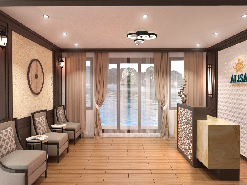 12h00- 12h30: Arrive at Tuan Chau harbor, take break and welcome drink at Alisa Cruise Lounge before boarding to Alisa Cruise