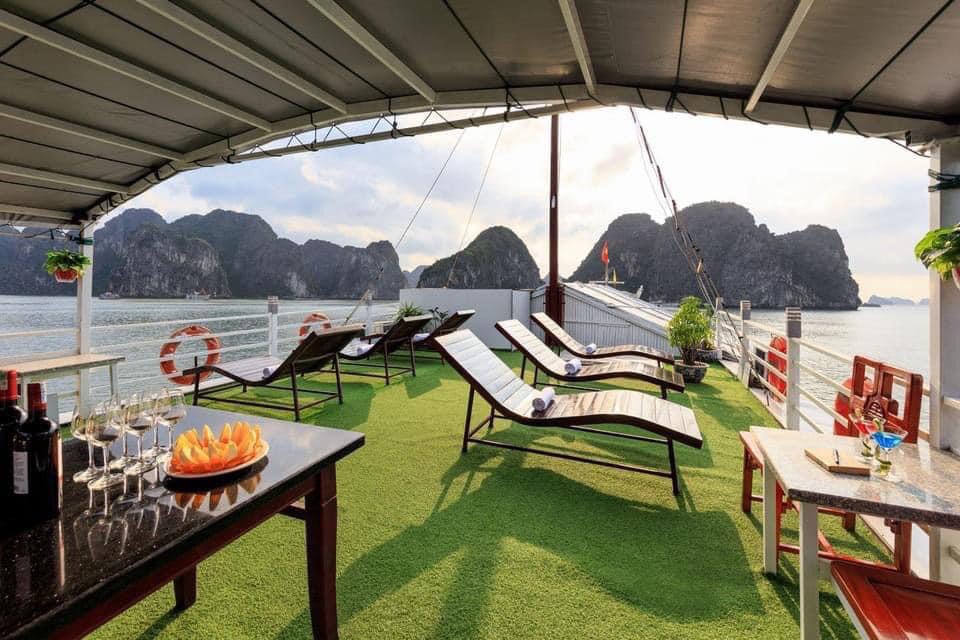 17h30: Come back to Cozy Bay Cruise then take a shower, Relax on sundeck, sunset watching in comfortable lounge chairs while drinking a cocktail or reading a book in the most magical moment.