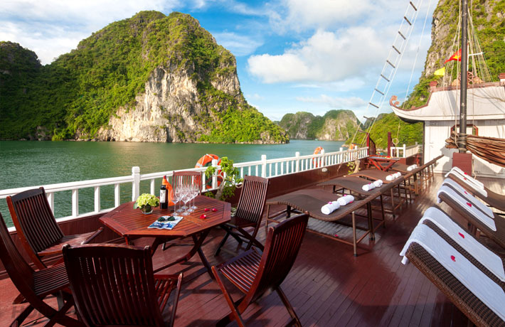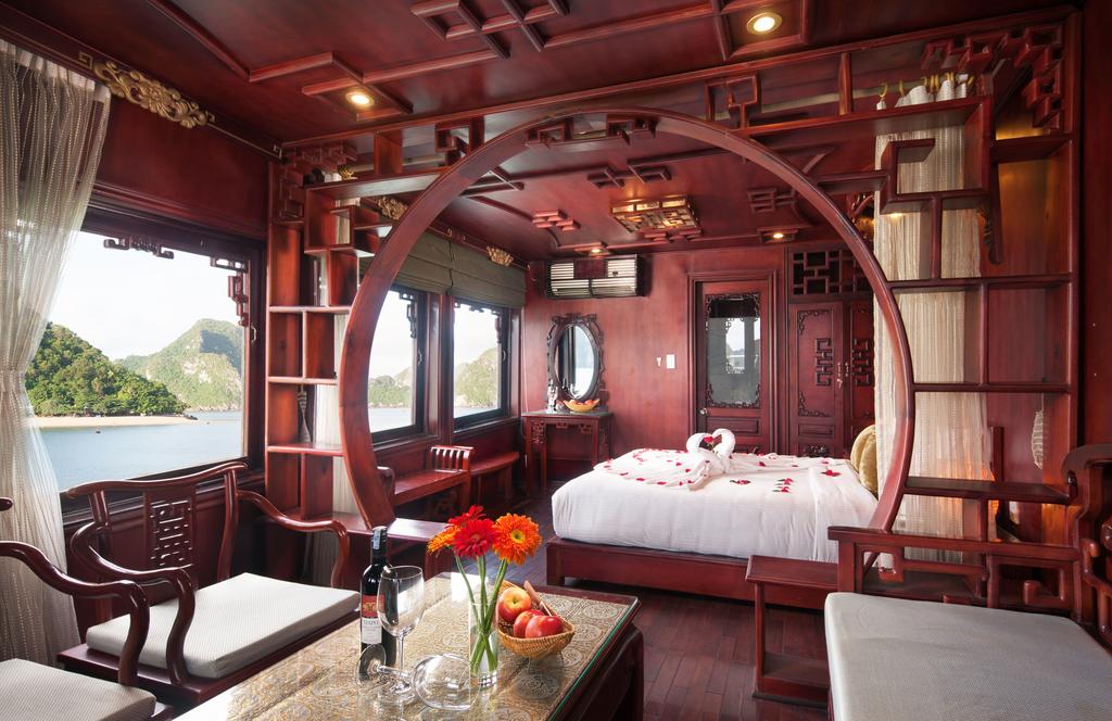 The boutique beauty of the cruise will charm all the guests at the first glance. Among hundreds of boats and cruises in Halong Bay. We can say for sure that the Royal Palace Cruise is the unique one which was designed specially like a Royal Palace, Totally different with any other one in Halong Bay. You will never see anyone which look same the Royal Palace Cruise