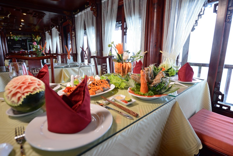 Meals onboard are fusion: Vietnamese, seafood menu... Guests should advise of vegetarian or allergic foods at least one (1) day prior to the cruise date.Alternity foods will be prepared