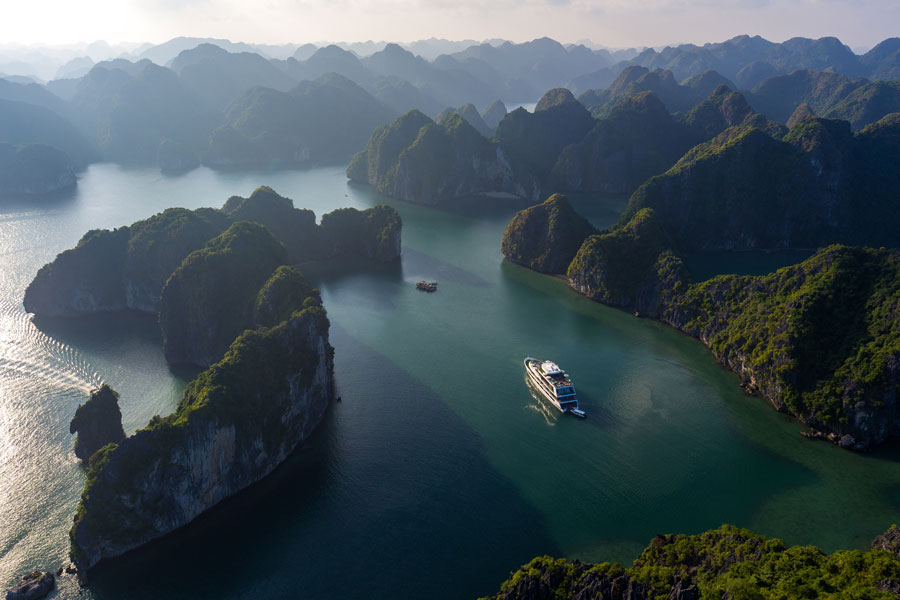 - Mingling yourself in the stunning views of the Bay and it’s dramatic limestone islets as we sail through the calm emerald waters heading to Dark & Bright Cave (Hang Sang & Toi)